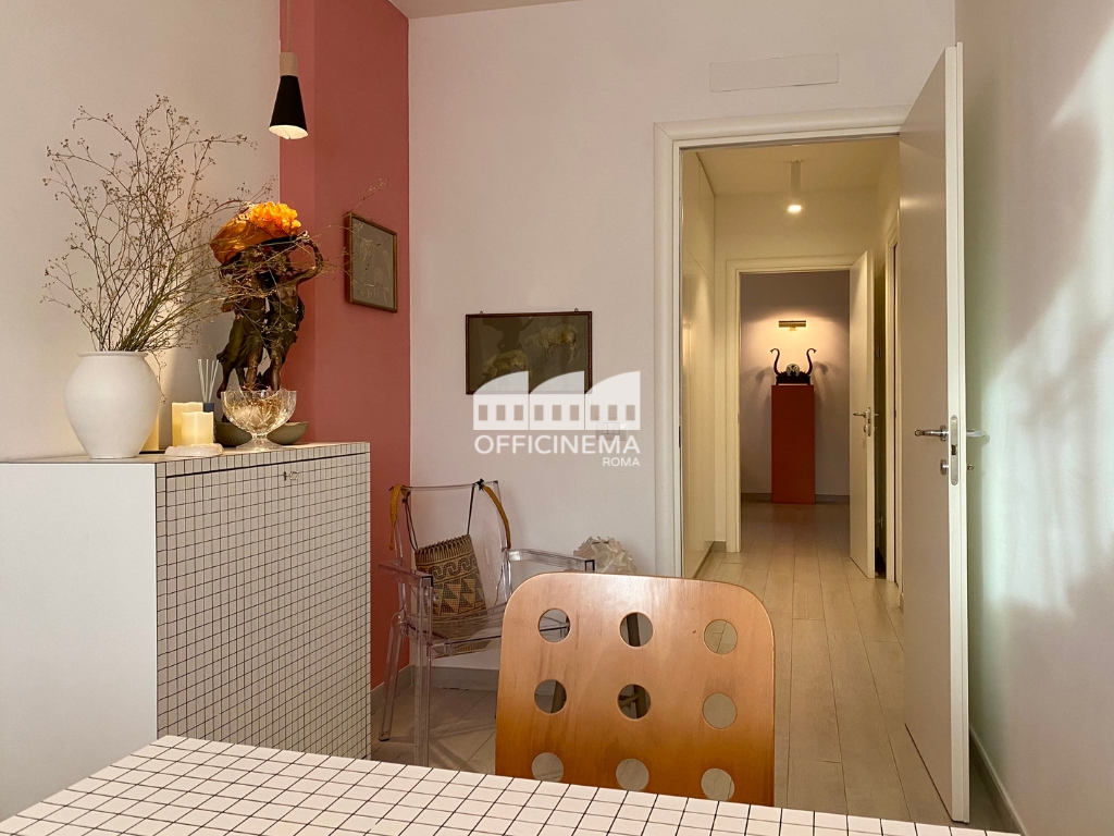 Appartamento elegante, caratterizzato dalle pareti rosa e dall'arredamento di design. Situato al secondo piano con ascensore, in zona Torrevecchia. Ampio parcheggio adiacente al palazzo.