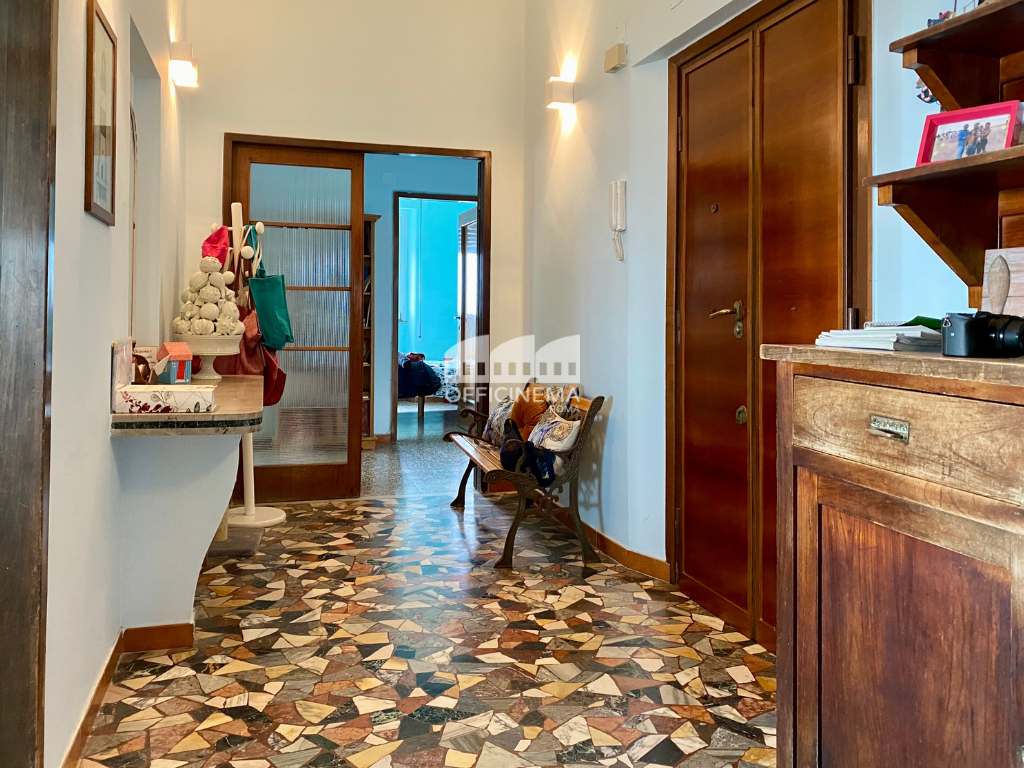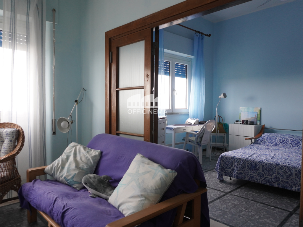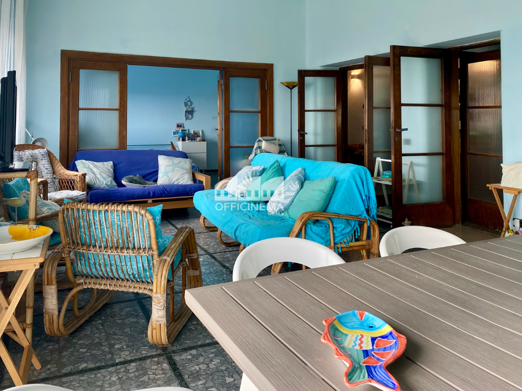 Elegante appartamento vista mare con grandi vetrate panoramiche, composto da salone, camere e servizi. Accesso senza ascensore. Parcheggi adiacenti comodi per i mezzi tecnici.