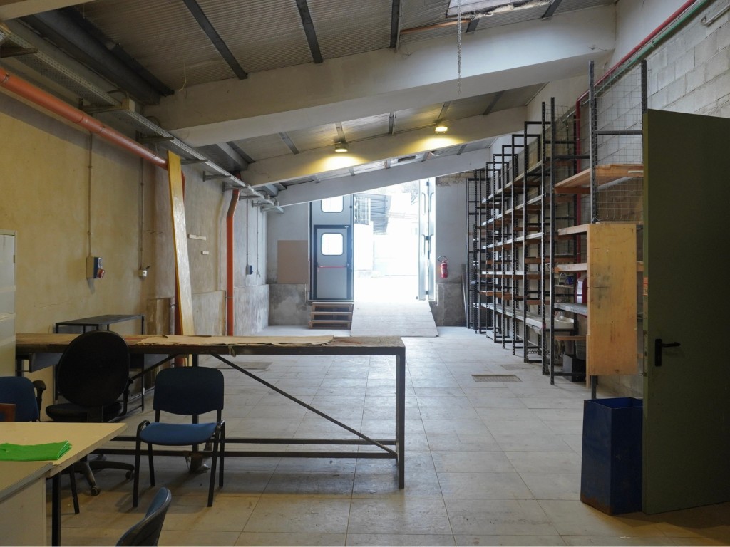 L' attrezzeria M1-2 è una delle più grandi del nostro stabilimento. La sua superficie di mq 200 è divisa in 2 ambienti : il laboratorio e il magazzino. Il magazzino ha anche un accesso direttamente dalla strada che consente facilmente operazioni di carico e scarico. L'attrezzeria ha un lavandino all'interno per facilitare le opere di pittura. Gli scaffali sono presenti in entrambi gli spazi. Qualora ci fosse la necessità di avere vicino anche l'ufficio per la scenografia può essere utilizzato lo spazio S3.