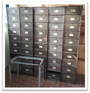 04CASSF – CASSETTIERA ’70 ALL COLONNA 10 CASSETTI FRONTALI