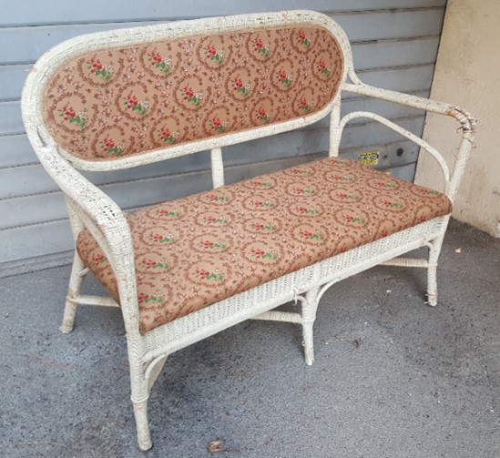 / 05ESTF – DIVANETTO 2 P ‘900 RATTAN BIANCA TESS ROSA ANTICO