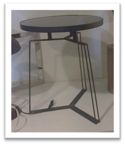 / 02COMF – COMODINO STURUTTURA ACCIAIO NERO PIANO TONDO VETRO NERO
