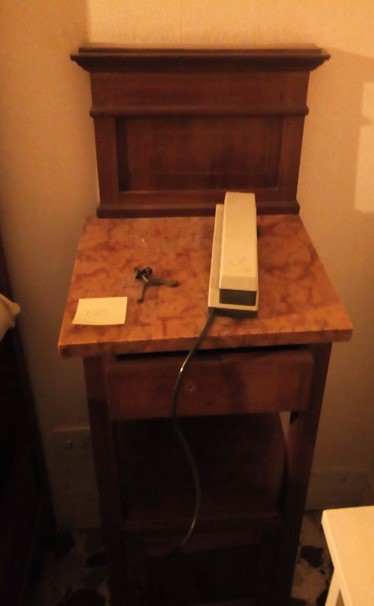 / 01COMDF – COMODINO NOCE ’40 CON GRECA PIANO MARMO ALZATA LEGNO