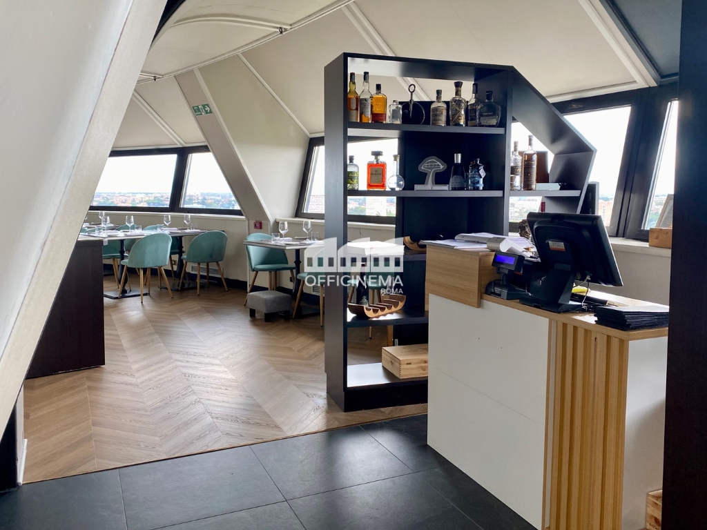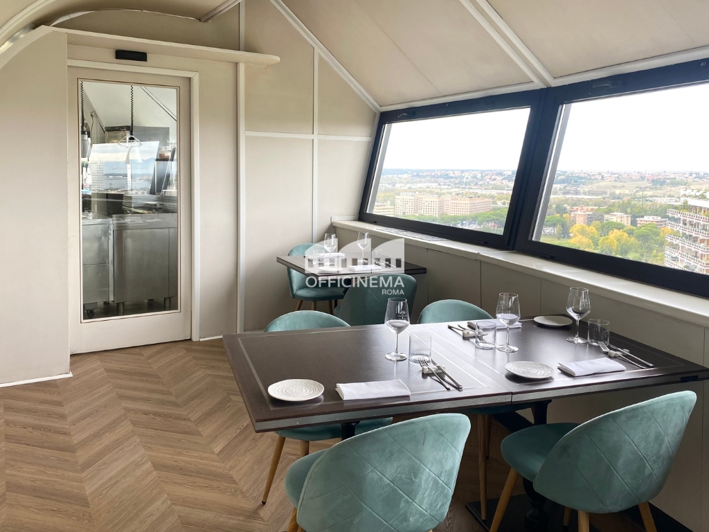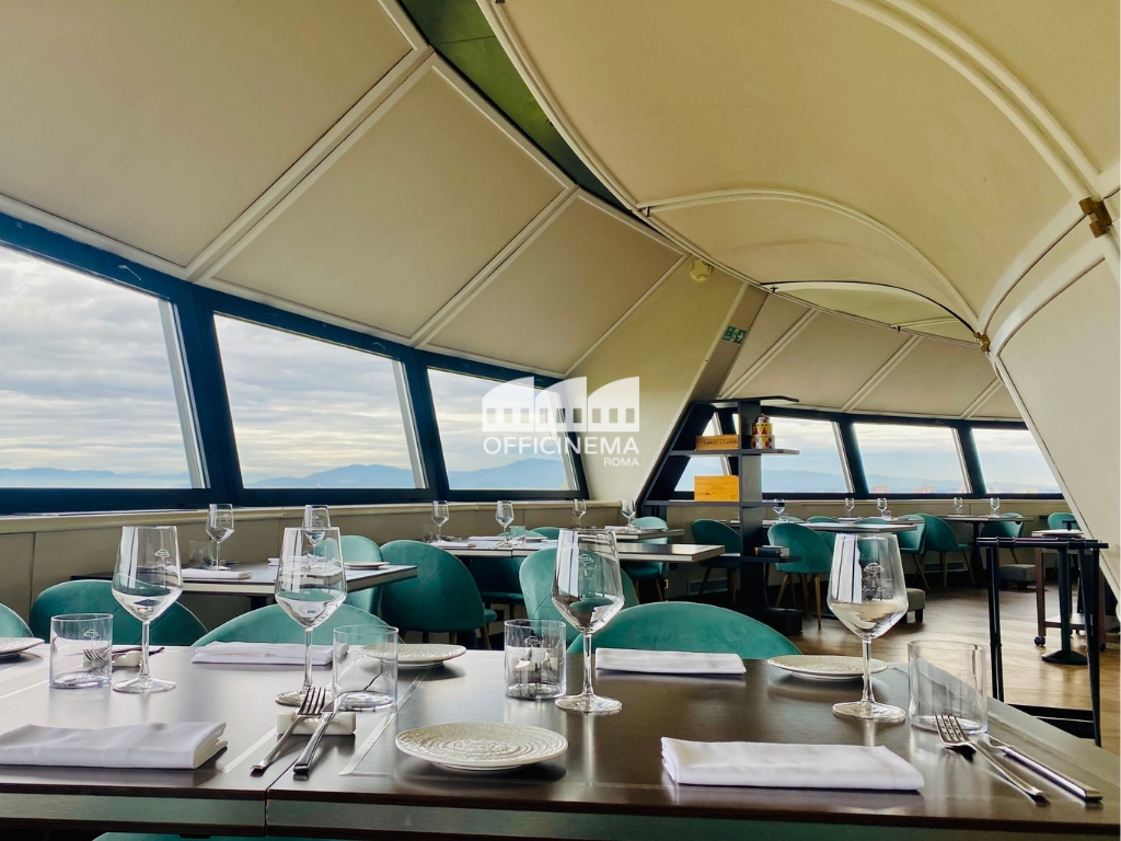 Ristorante caratteristico ed unico, un disco volante sospeso nell’aria, vista panoramica su Roma.