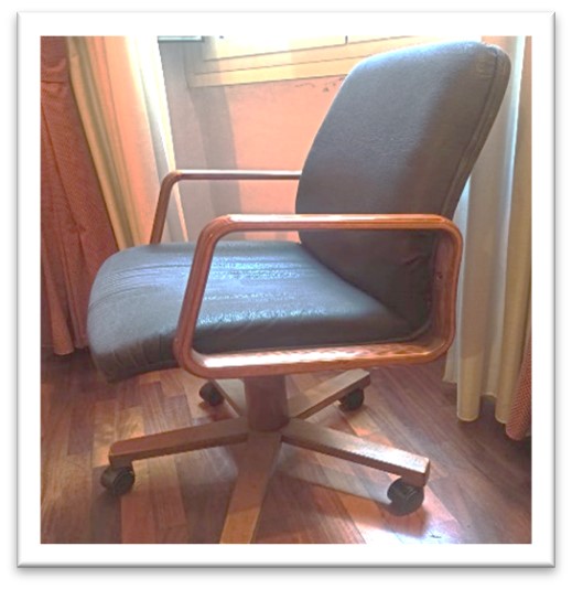 39SEDF – SEDIA CON BRACCIOLI CILIEGIO TESSUTO SCURO SU ROTELLE