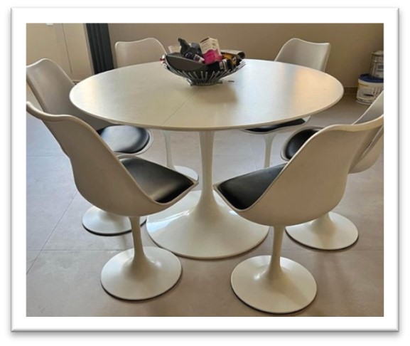 SEDIA BIANCA TULIP CUSCINO PELLE NERA