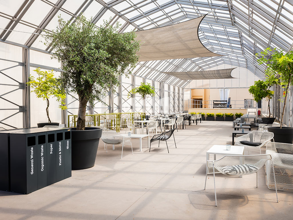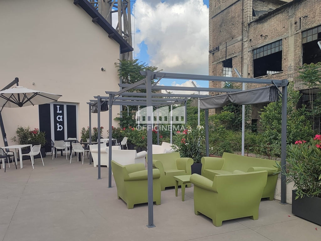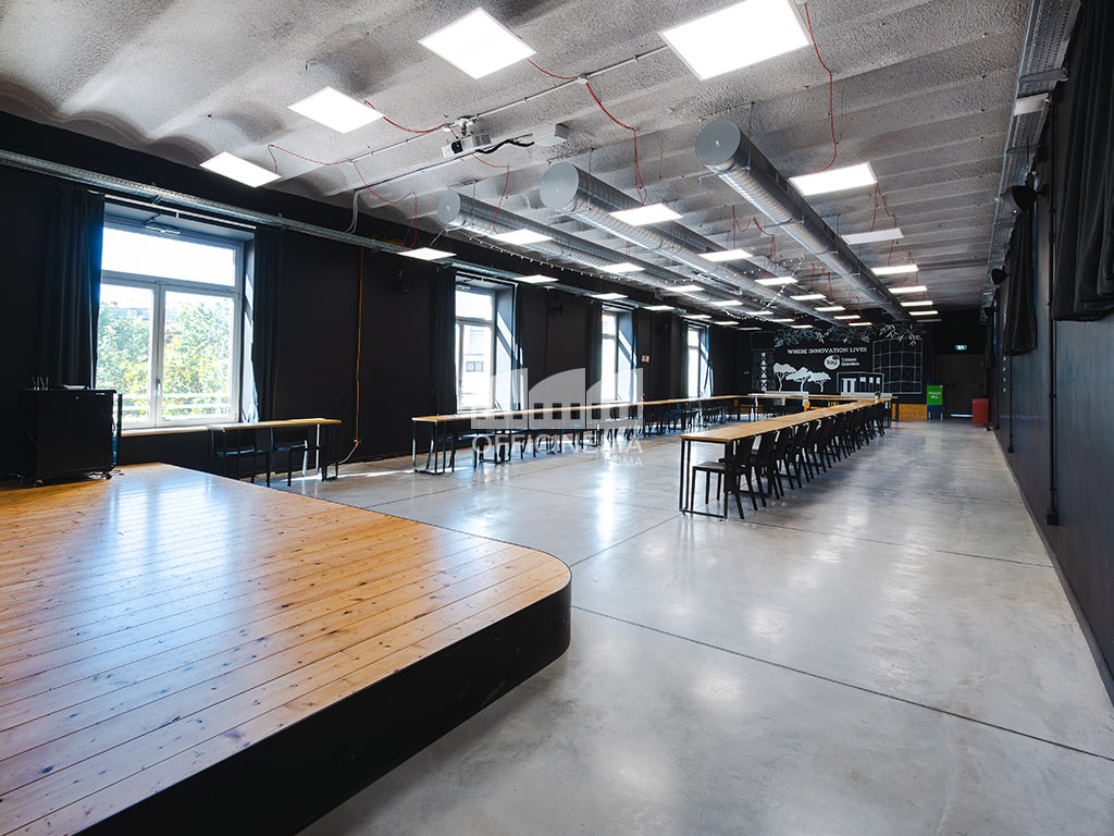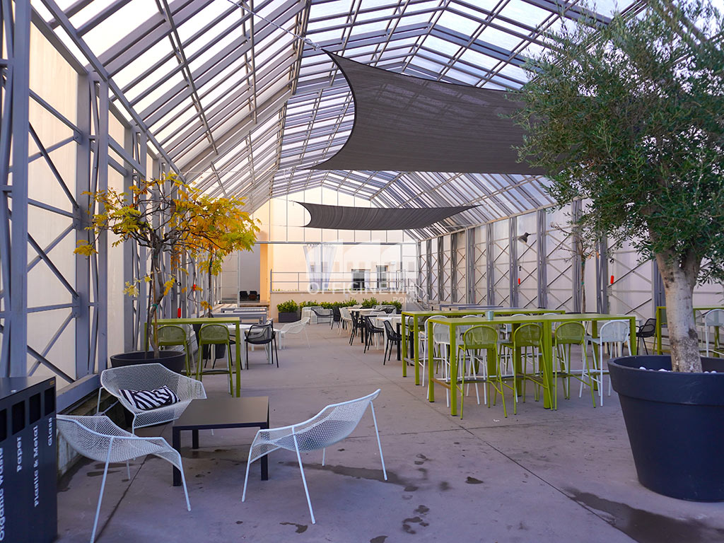 Spazio polifunzionale costituito da ampi luoghi deputati: dalla tensostruttura che ricorda un giardino d’inverno, al Lab con ingresso indipendente incorniciato da edifici industriali romani, alla sala conferenze dotata di palco e schermo per le proiezioni.