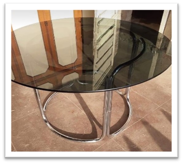 TAVOLO PIANO E LATERALI CRISTALLO ANIMA ACCIAIO