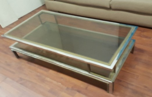 / 14TAVF – TAVOLO RETT ’70 2 PIANI ACCIAIO VETRO FUME’