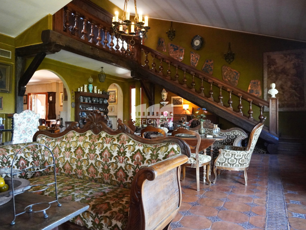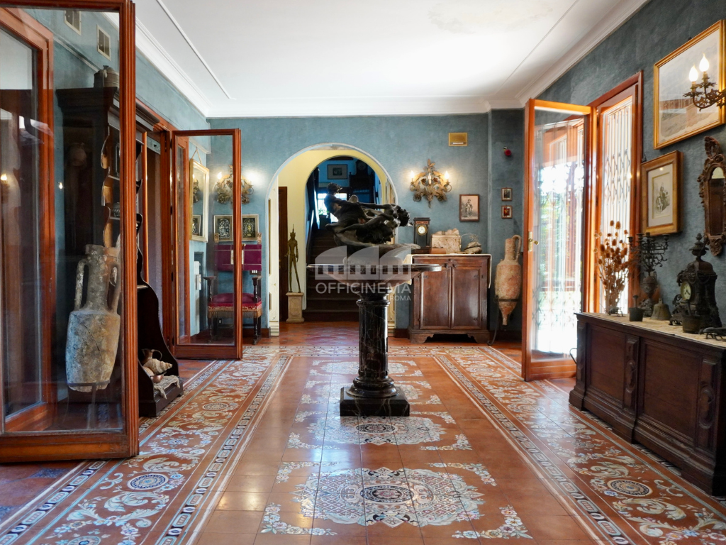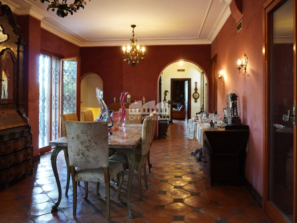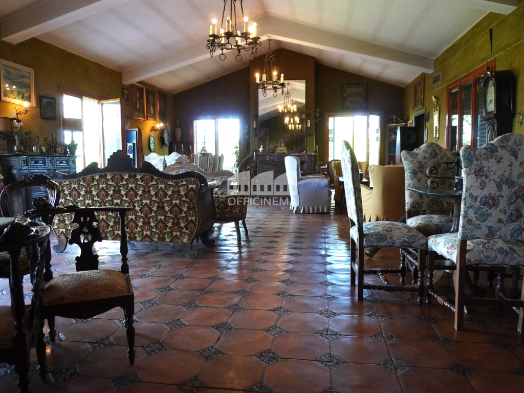 Villa su più livelli con giardino alberato, fontana e voliera. Luminosa, colorata, dagli ampi spazi e gli arredi importanti.