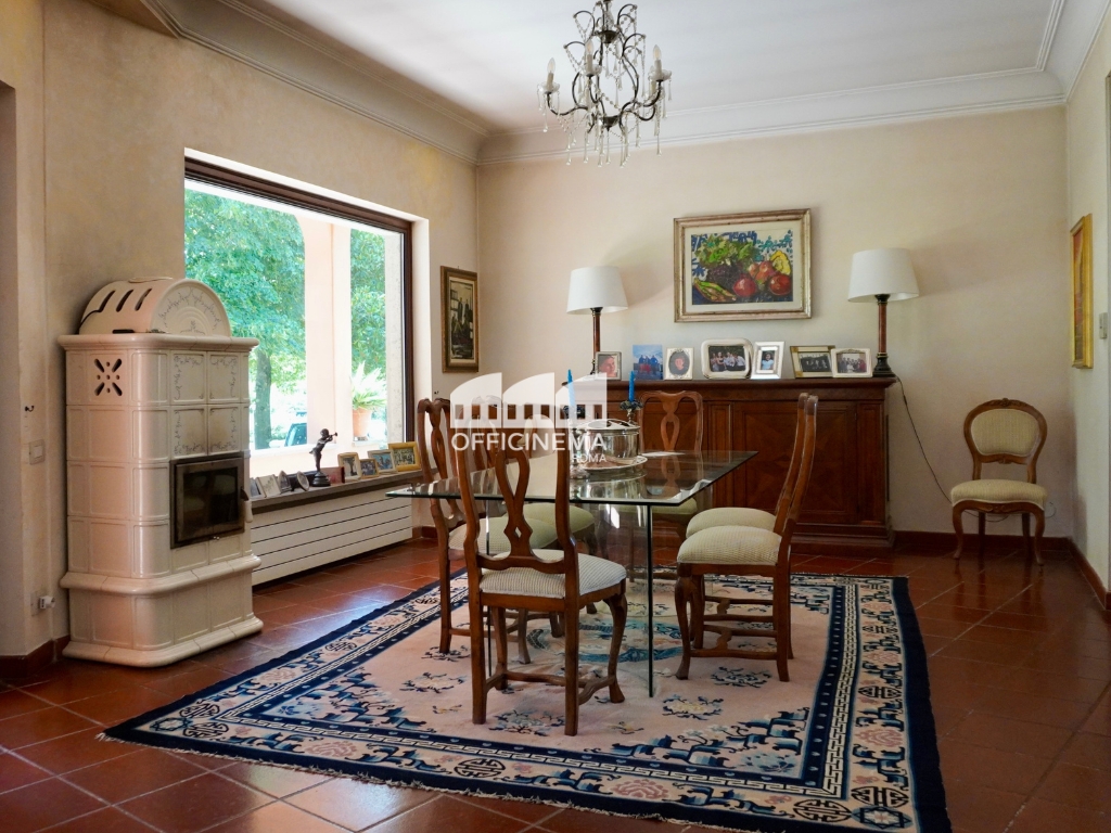 Villa moderna e signorile su due livelli, immersa nel verde, appena fuori dal GRA - Roma Nord. Grande giardino alberato, ben curato, con piscina, angolo barbecue. Perfetto per allestire scene intorno ad un'elegante tavola all'esterno o nel soggiorno interno.