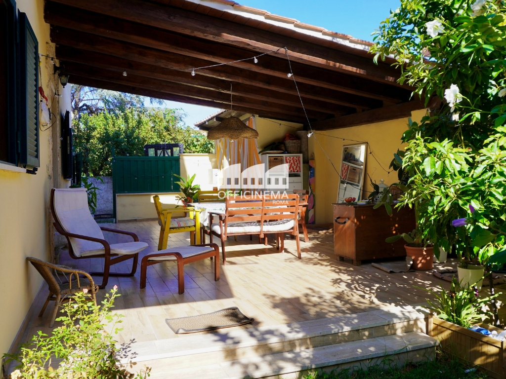 Appartamento indipendente situato al piano terra di una villa bifamiliare all'Isola Sacra, Fiumicino. Passando per il vialetto privato, si accede alla veranda coperta, arredata con gusto, stile rustico e semplice, con piccolo giardino antistante. Gli interni moderni, sono divisi su due livelli, per la zona giorno e la zona notte. Location perfetta per piccole troupe.